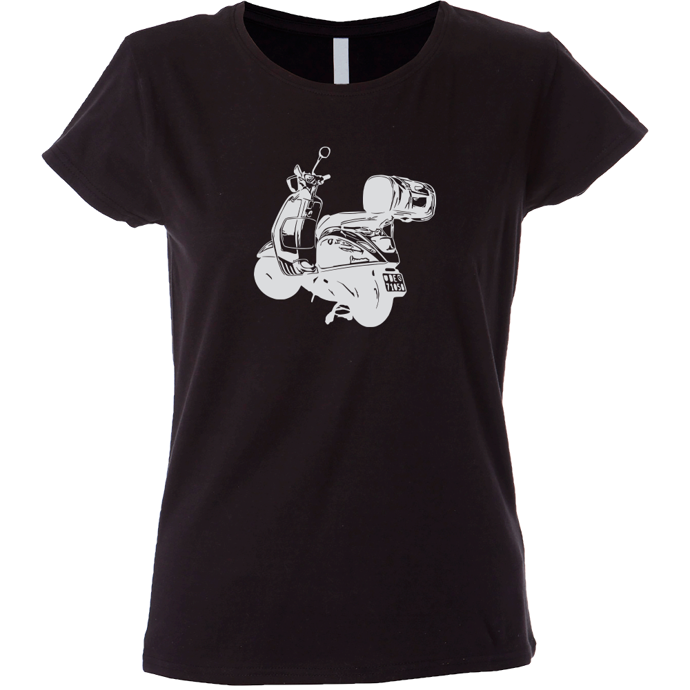Camiseta mujer de manga corta con cinta de refuerzo en el cuello con diseño de vespa