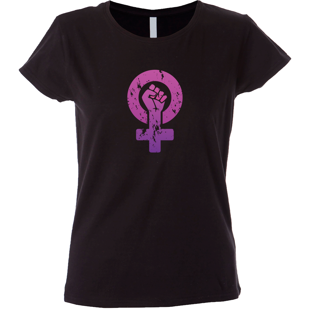 Camiseta mujer de manga corta con cinta de refuerzo en el cuello con diseño de símbolo feminista