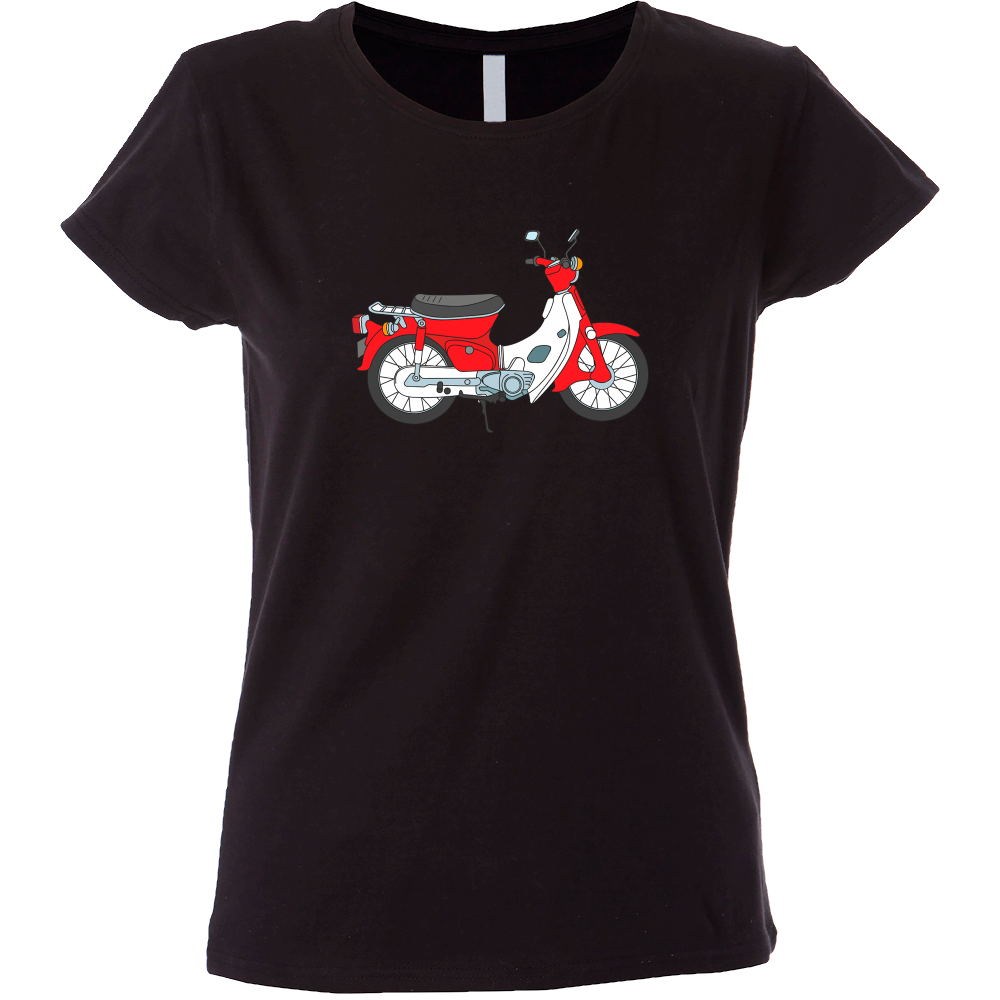 Camiseta mujer de manga corta con cinta de refuerzo en el cuello con diseño de vespa roja