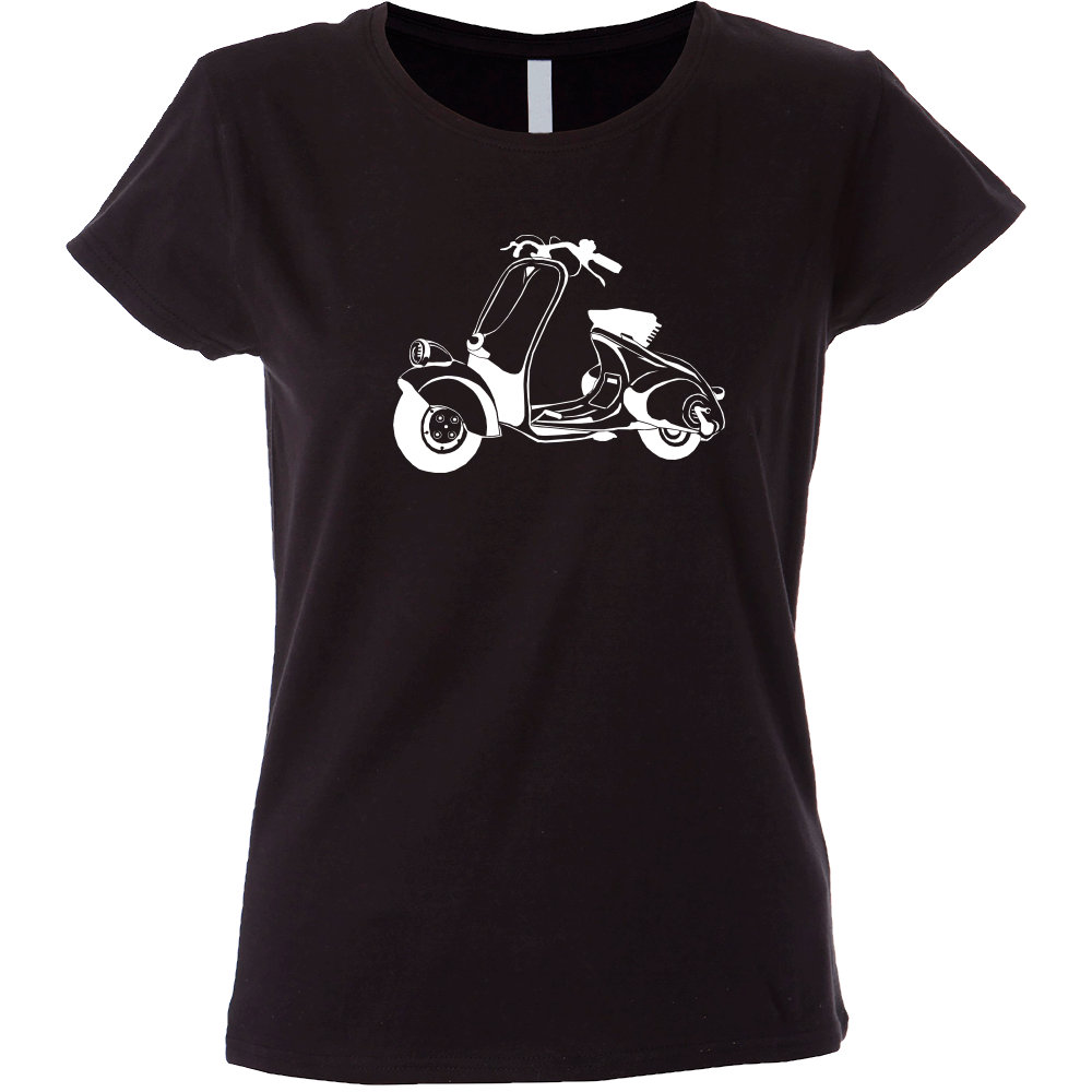 Camiseta mujer de manga corta con cinta de refuerzo en el cuello con diseño de vespa sillín bajo