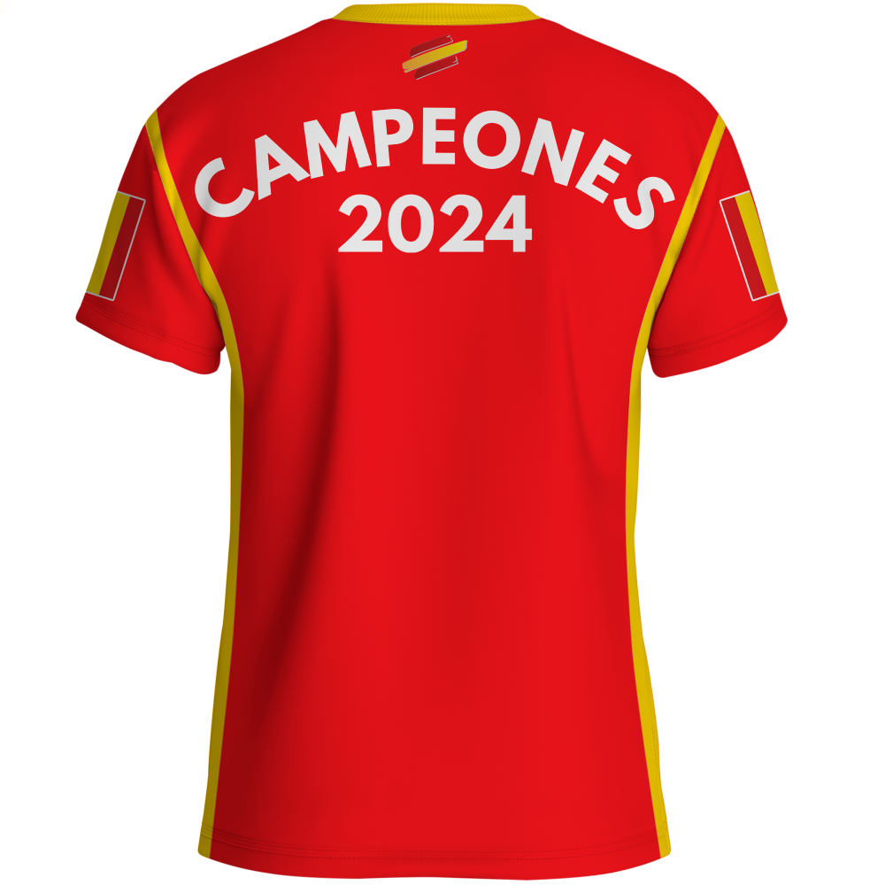 Camiseta conmemorativa (bandas combinadas) de la Eurocopa 2024 en Alemania que celebra la gran actuación de España durante todo el campeonato y en la final contra Inglaterra ¡También en tallas infantiles!