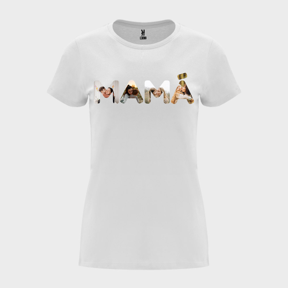 Camiseta personalizable con diseño de Mamá para regalar en el Día de la Madre. Sácale una sonrisa a tu madre con esta camiseta personalizada exclusivamente para ella. Puedes escoger la foto que más te guste destacando un momento especial o hacer un collage de las mejores fotos que tengáis juntos.