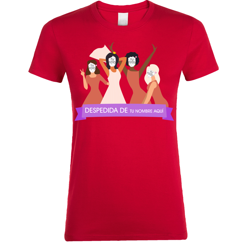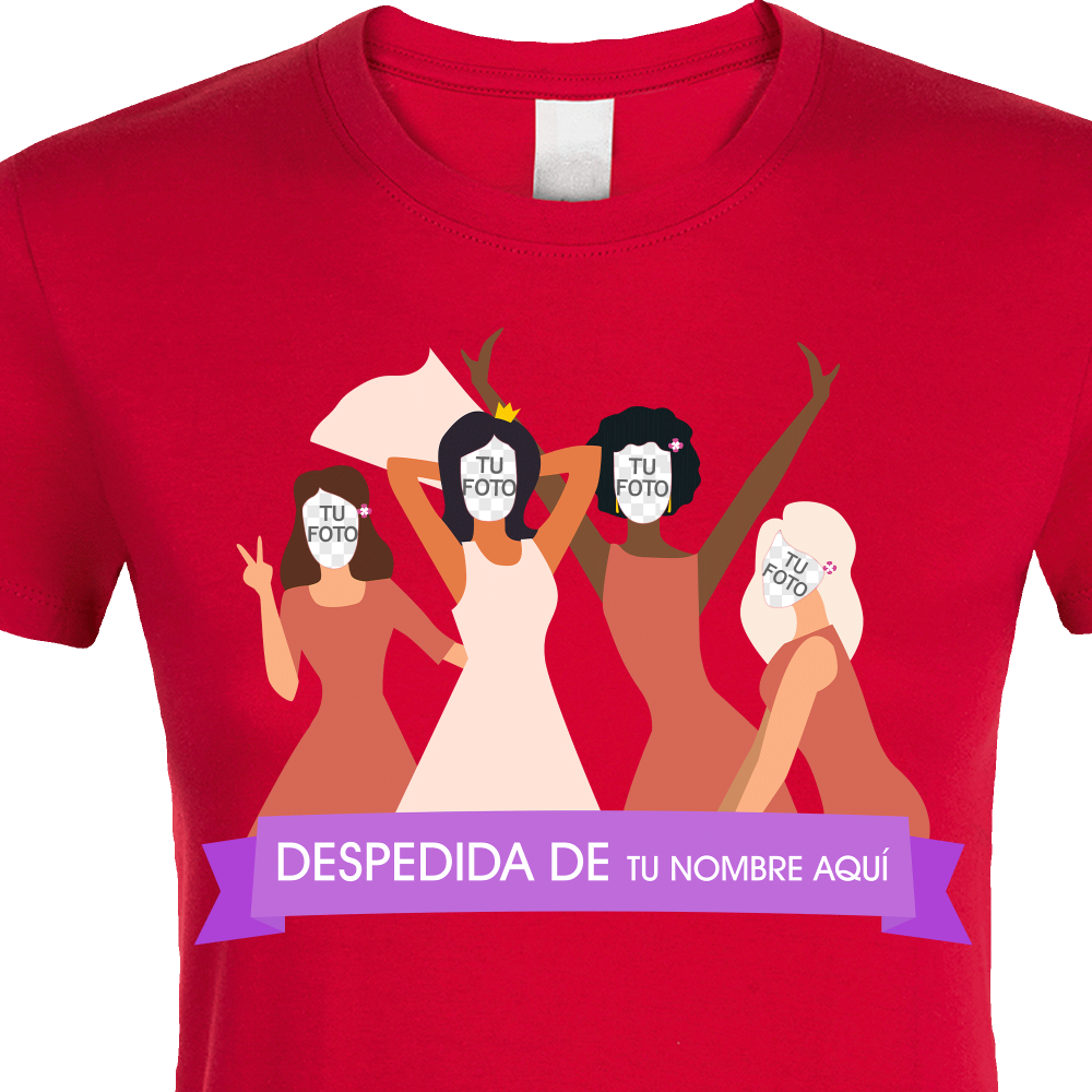 Personalízalo con las fotos de tus amigas: Puedes personalizarlo con la cara de cada una de tus amigas. Añade el producto al personalizador, sube sus fotos y colócalas en el recuadro correspondiente. Esta camiseta es específica para cuatro amigas.