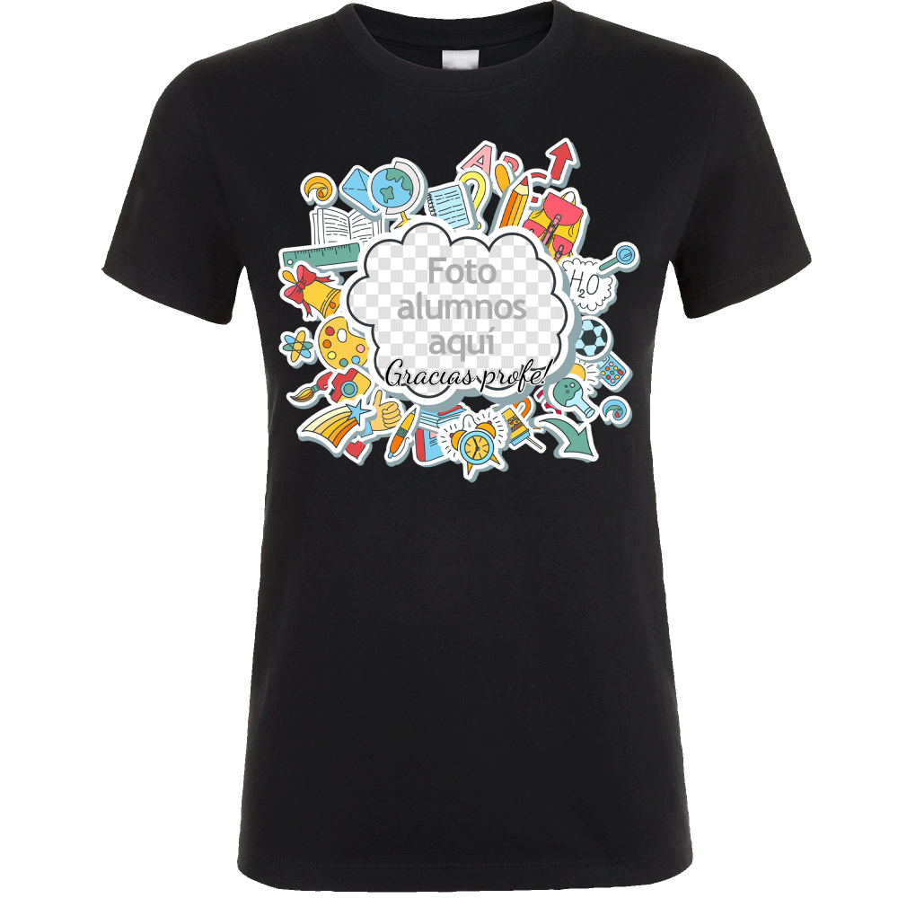 Personaliza el diseño con la foto de los alumnos del curso: Puedes personalizar la camiseta con los alumnos del curso. Añade el producto al personalizador, sube la foto y colócala en el recuadro correspondiente.