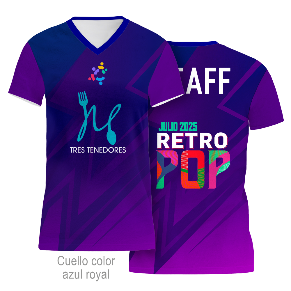 Camiseta para eventos cuello pico de mujer 100% fullprint personalizada