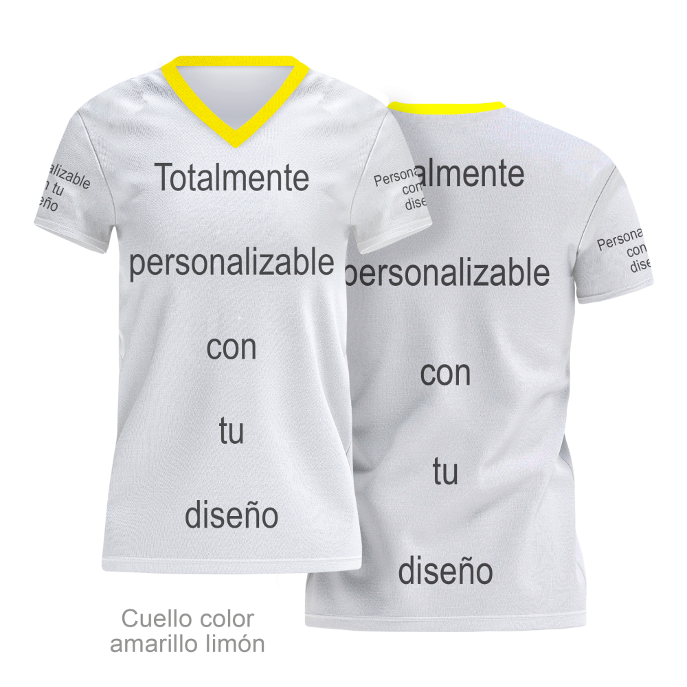 Personaliza la camiseta al 100%: delante, detrás y mangas. También puedes escoger el color del cuello