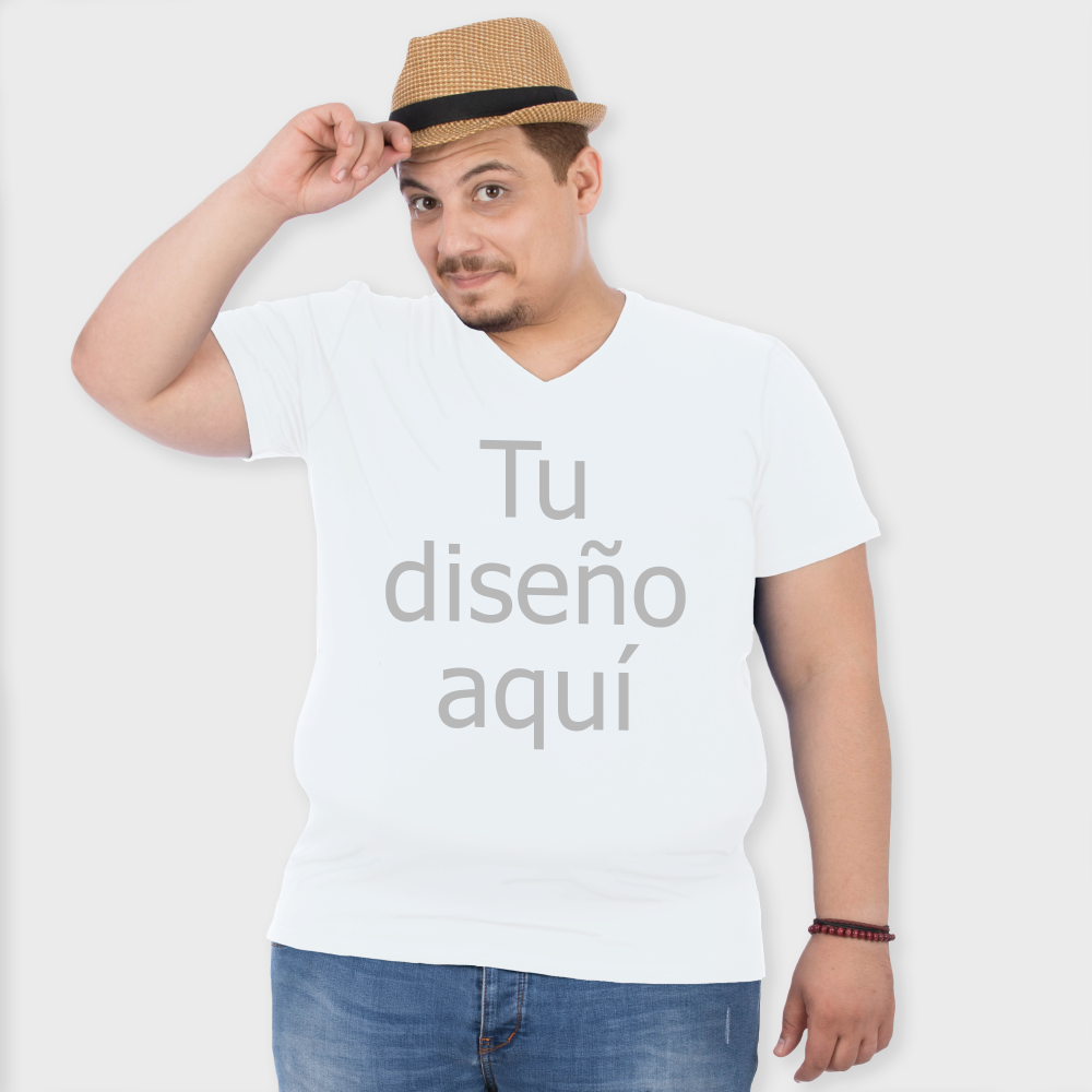 Camiseta 3XL cuello pico blanca personalizada