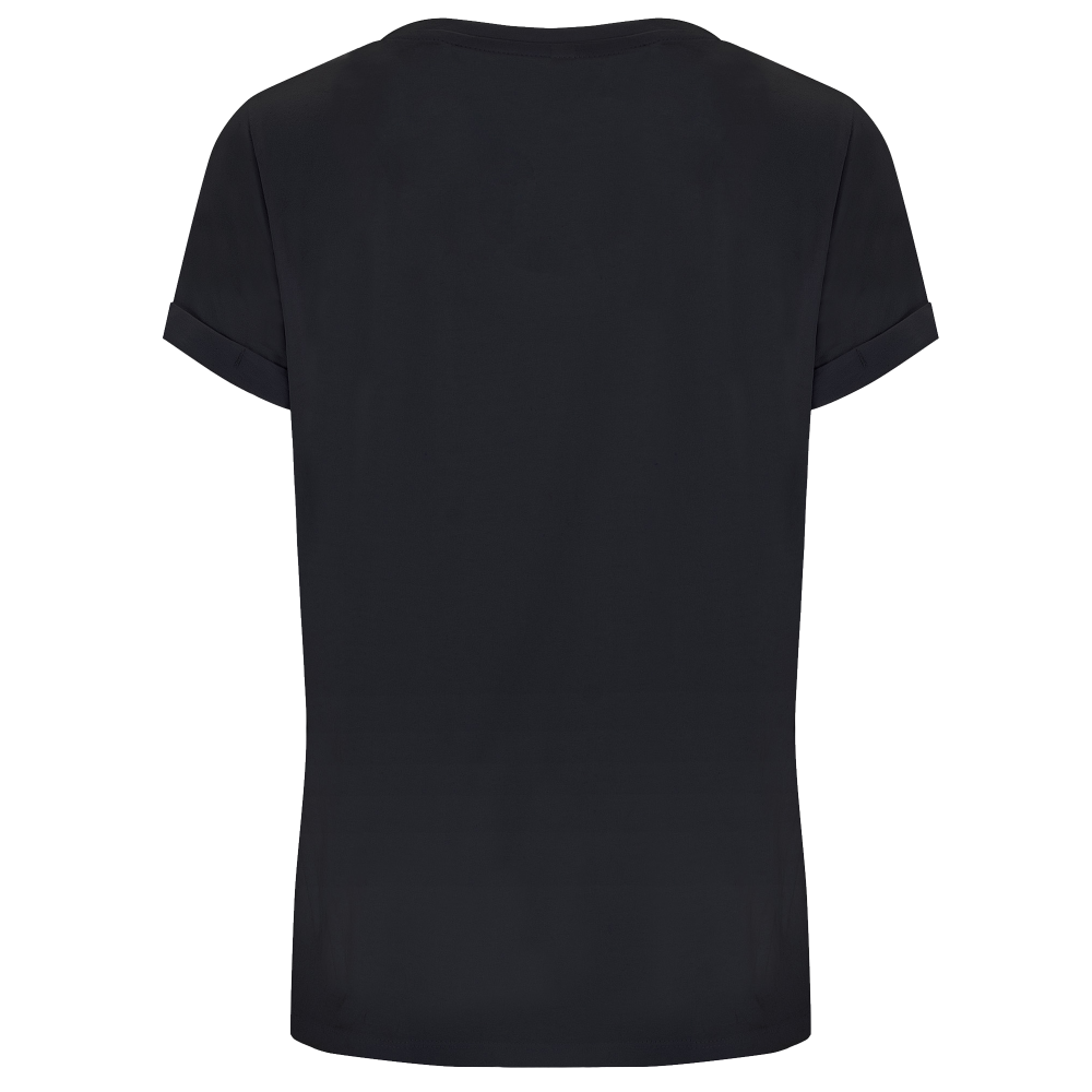 Camiseta de manga corta holgada con escote del mismo tejido.