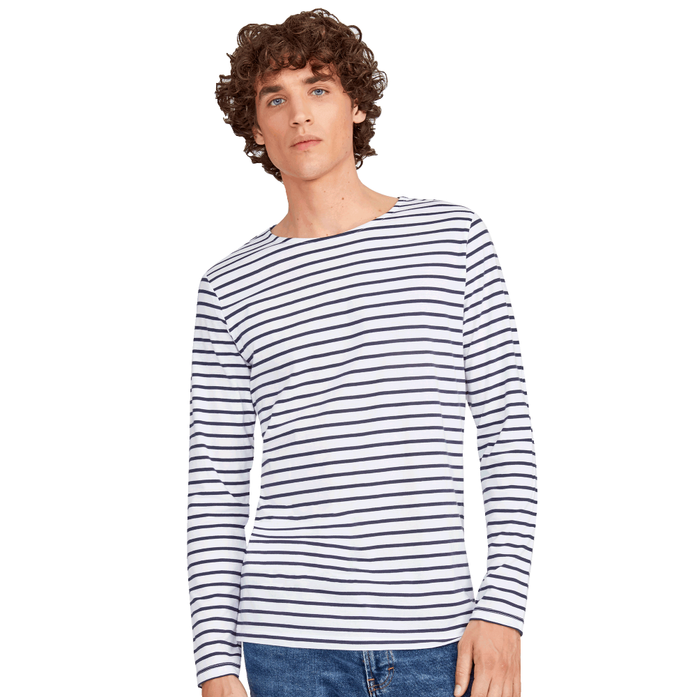 - Las camisetas de manga larga a rayas son del fabricante Sol's, modelo Marine.