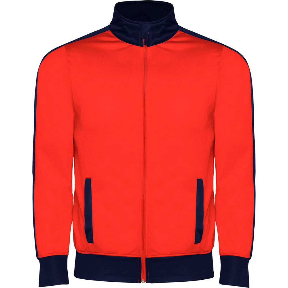 - Chaqueta con bandas laterales, cuellos, puños, bajo y bolsillos a contraste