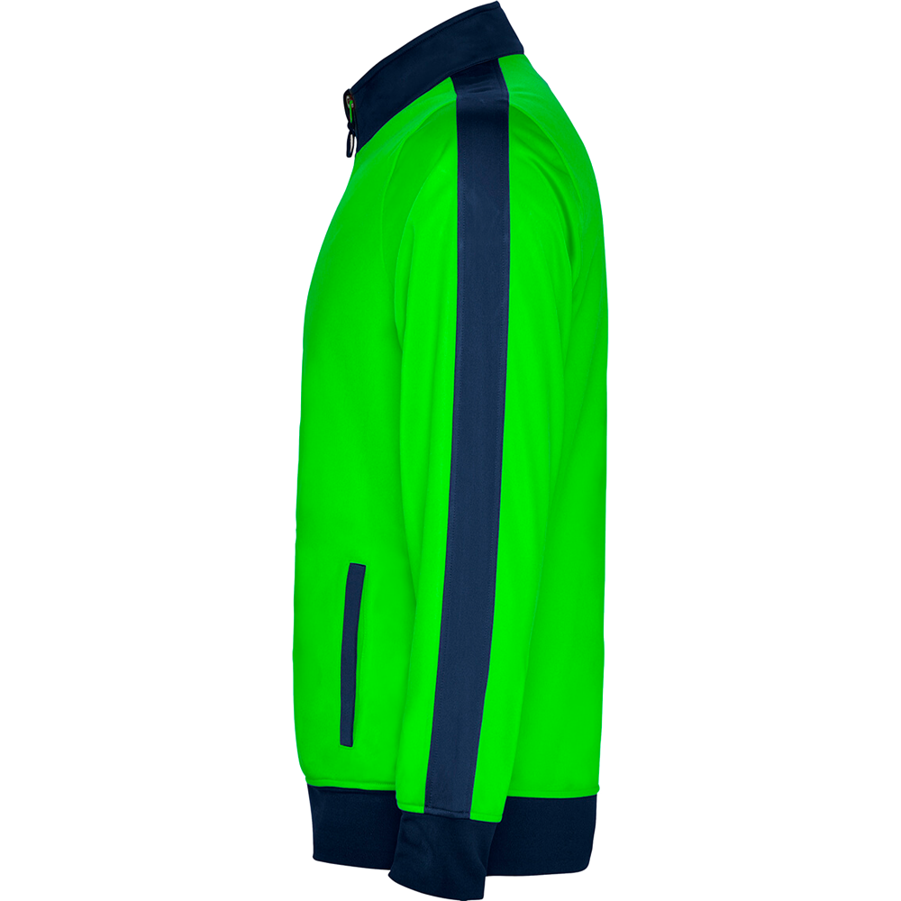 - Chaqueta con bandas laterales, cuellos, puños, bajo y bolsillos a contraste