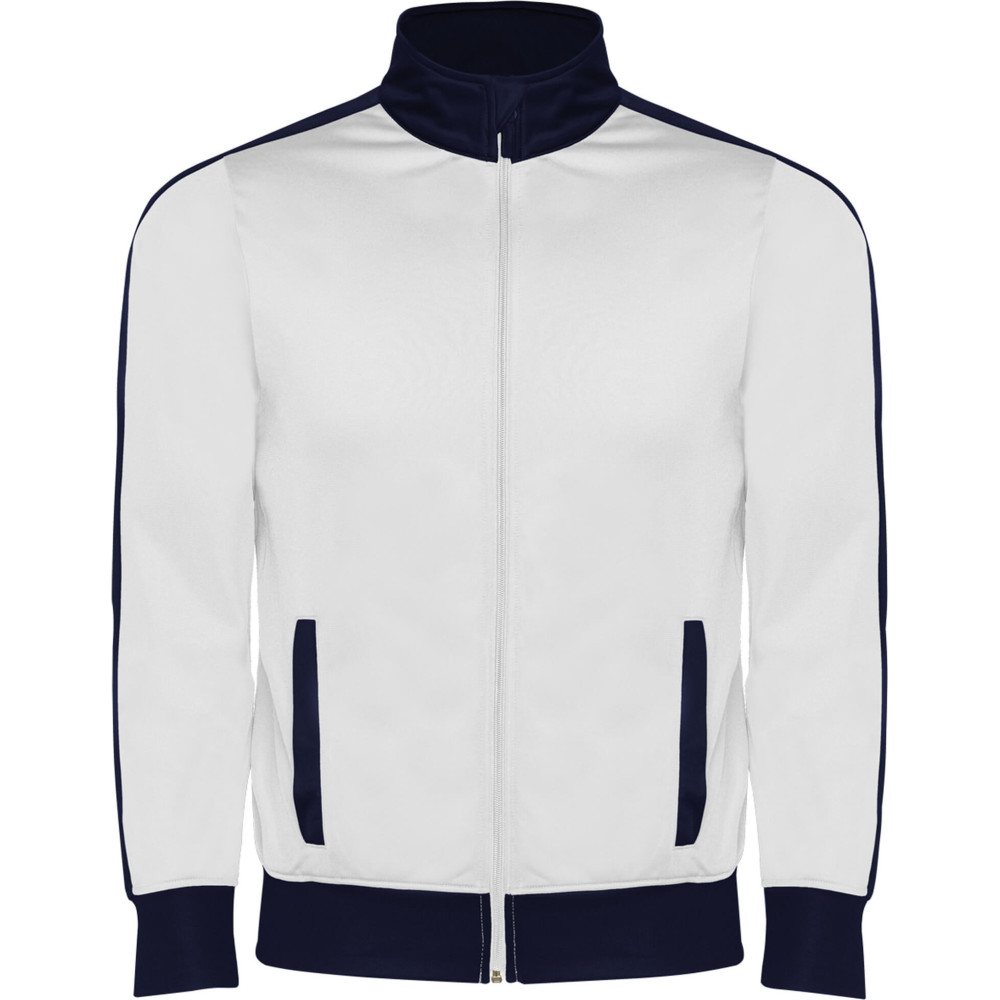 - Chaqueta con bandas laterales, cuellos, puños, bajo y bolsillos a contraste