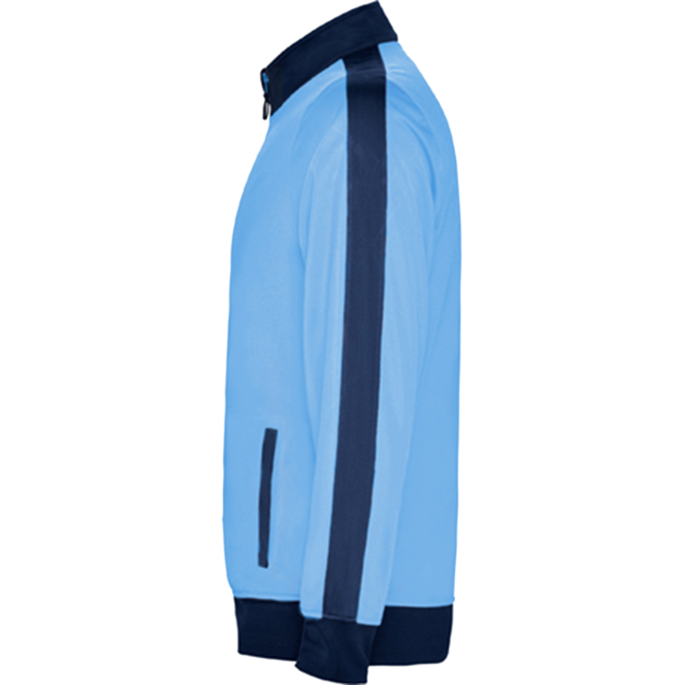 - Chaqueta con bandas laterales, cuellos, puños, bajo y bolsillos a contraste