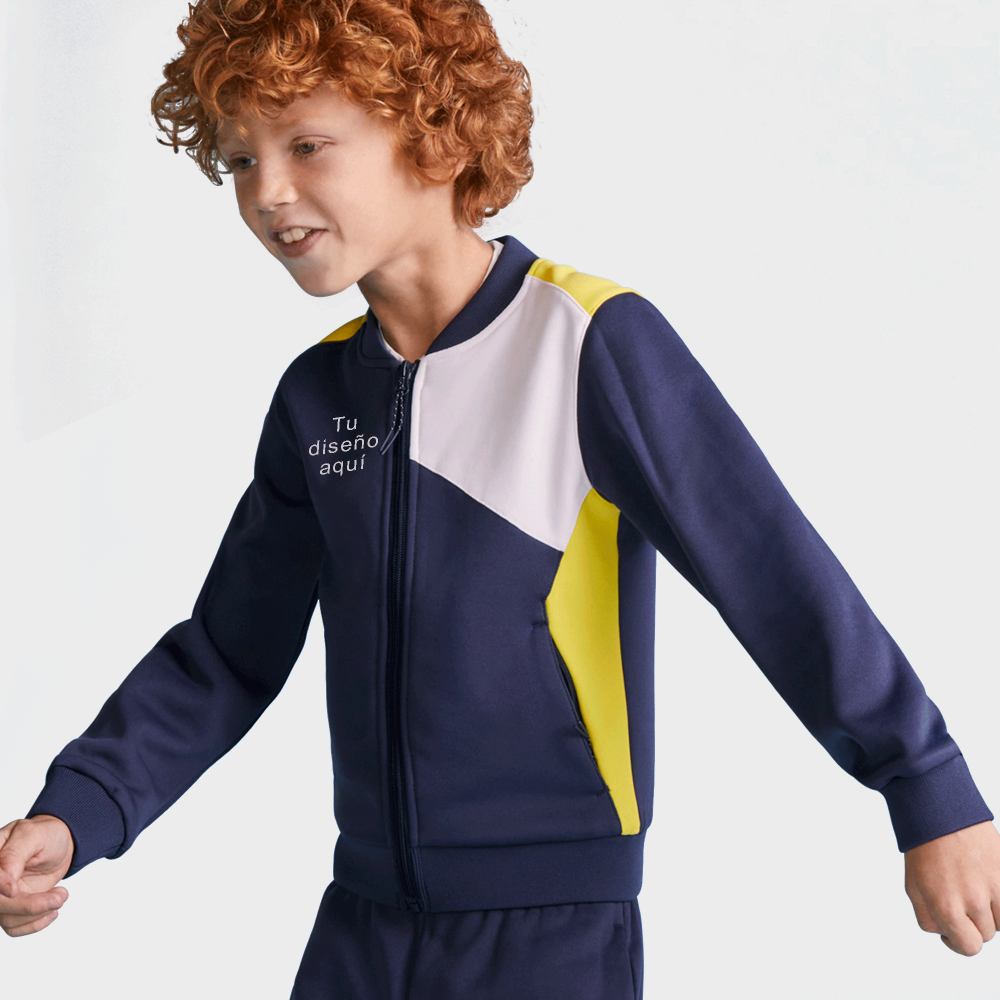 En este chándal puedes personalizar a cada lado de la cremallera, en ambas mangas y en la espalda