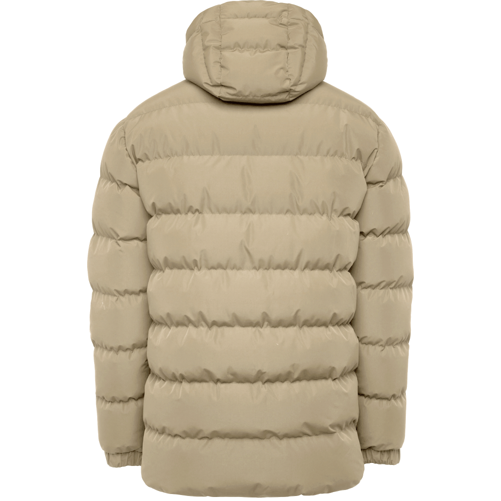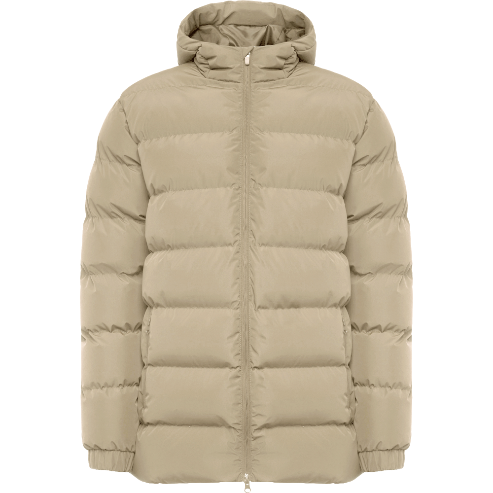 Abrigo de tejido 100% poliéster acolchado rellenado de guata 100% poliéster efecto pluma 160 g/m2.