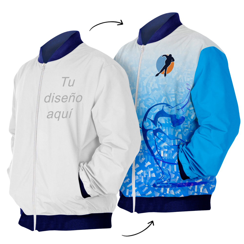 Personaliza la chaqueta al 100%: delante, espalda y mangas. También puedes escoger la combinación de color de cuello y cremallera.
