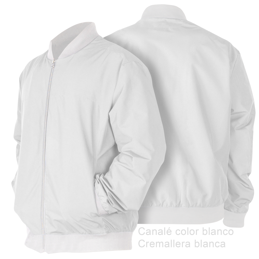 Chaqueta bomber 100% poliéster con acabado en canalé en puños y bajos