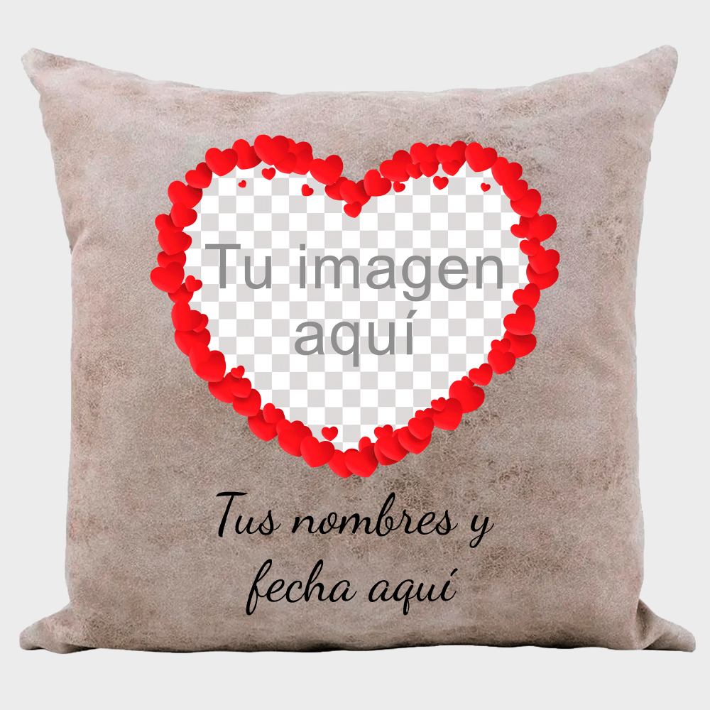 Cojín tacto cuero para San Valentín diseño corazón personalizable
