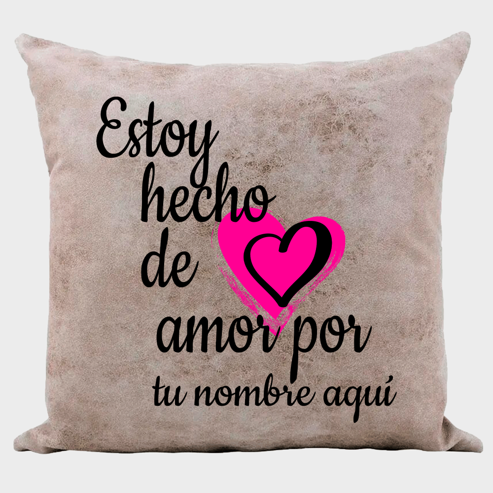 Cojín tacto cuero para San Valentín diseño hecho de amor personalizable
