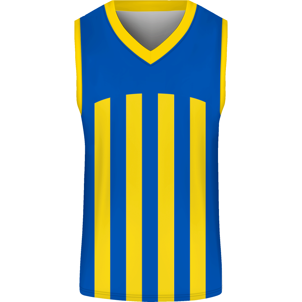 Equipación unisex ideal para actividades como baloncesto. Modelo Rayada con camiseta sin mangas y con cuello en pico y pantalón con cinturilla elástica y raya en el borde de la costura, que puedes personalizar hasta en 14 zonas diferentes.