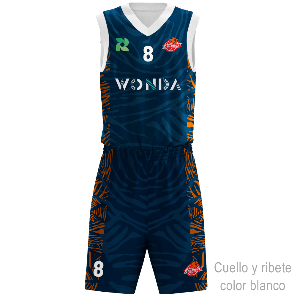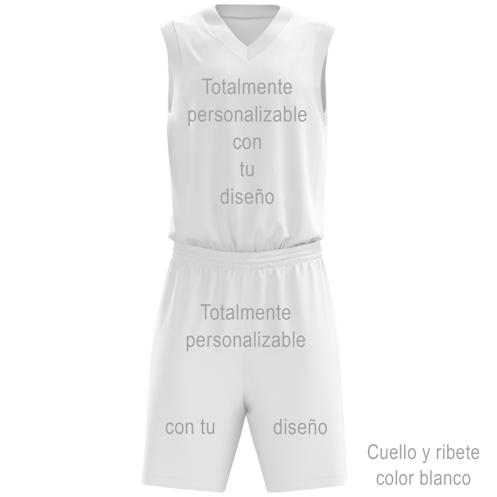 Conjunto ideal para actividades como baloncesto. Se puede personalizar al 100% por delante y detrás. También podrás escoger el color del cuello y ribete.