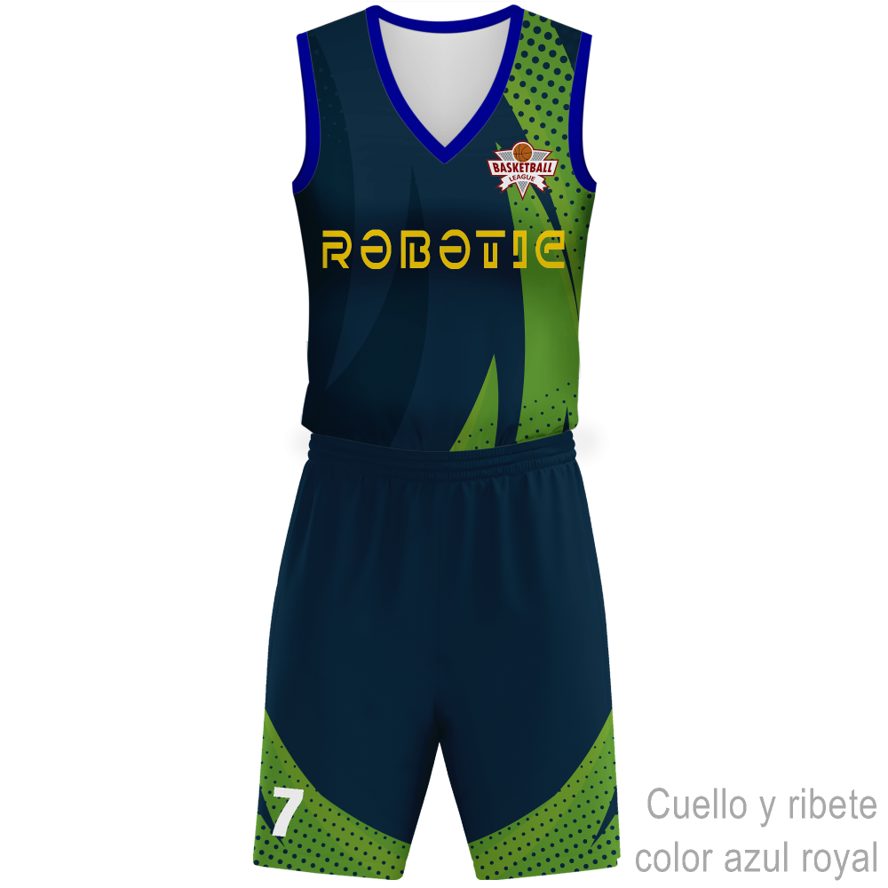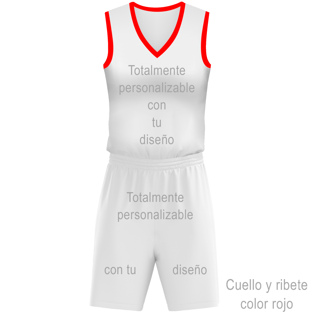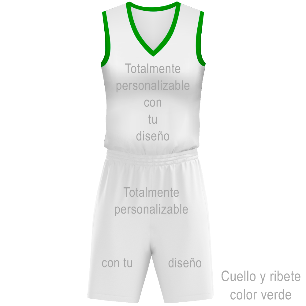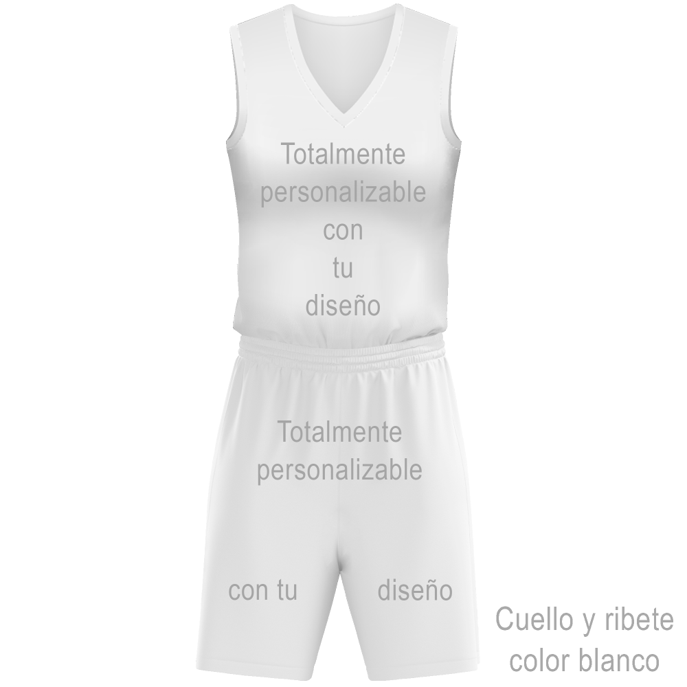 Conjunto ideal para actividades como baloncesto. Se puede personalizar al 100% por delante y detrás. También podrás escoger el color del cuello y ribete.