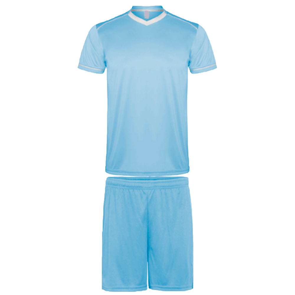 Compuesto de una camiseta con abertura en V y un pantalón. Tejido ligero y fresco para poder realizar tus actividades de deporte sin limitación de movimientos.