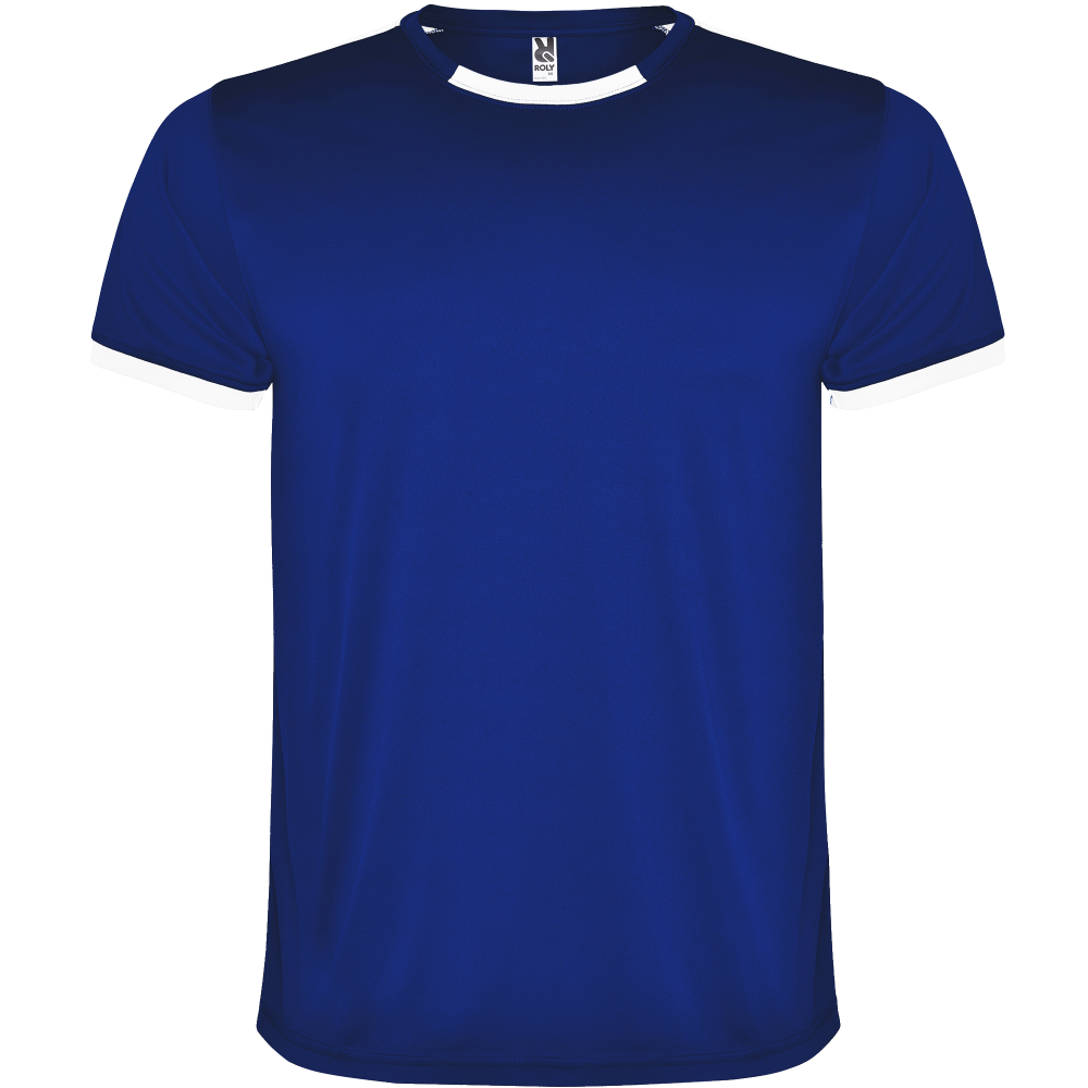 - Cuello redondo con ribete bicolor y con cubrecosturas reforzado en su interior