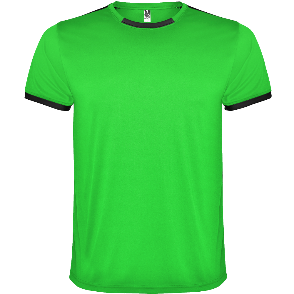 • Cuello redondo con ribete bicolor y con cubrecosturas reforzado en su interior