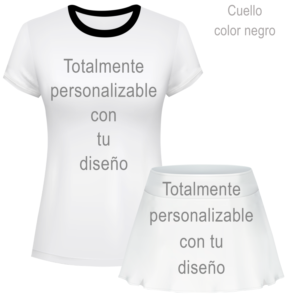 En este conjunto puedes personalizar la totalidad de la parte delantera y trasera de ambas prendas y las mangas de la camiseta. También podrás escoger el color del cuello.
