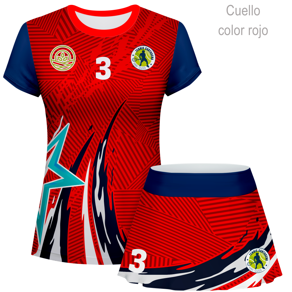 En este conjunto puedes personalizar la totalidad de la parte delantera y trasera de ambas prendas y las mangas de la camiseta. También podrás escoger el color del cuello.