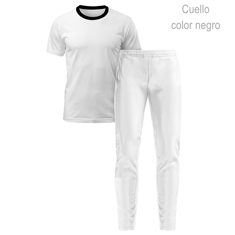 En este conjunto puedes personalizar la totalidad de la parte delantera y trasera de ambas prendas y las mangas de la camiseta. También podrás escoger el color del cuello.