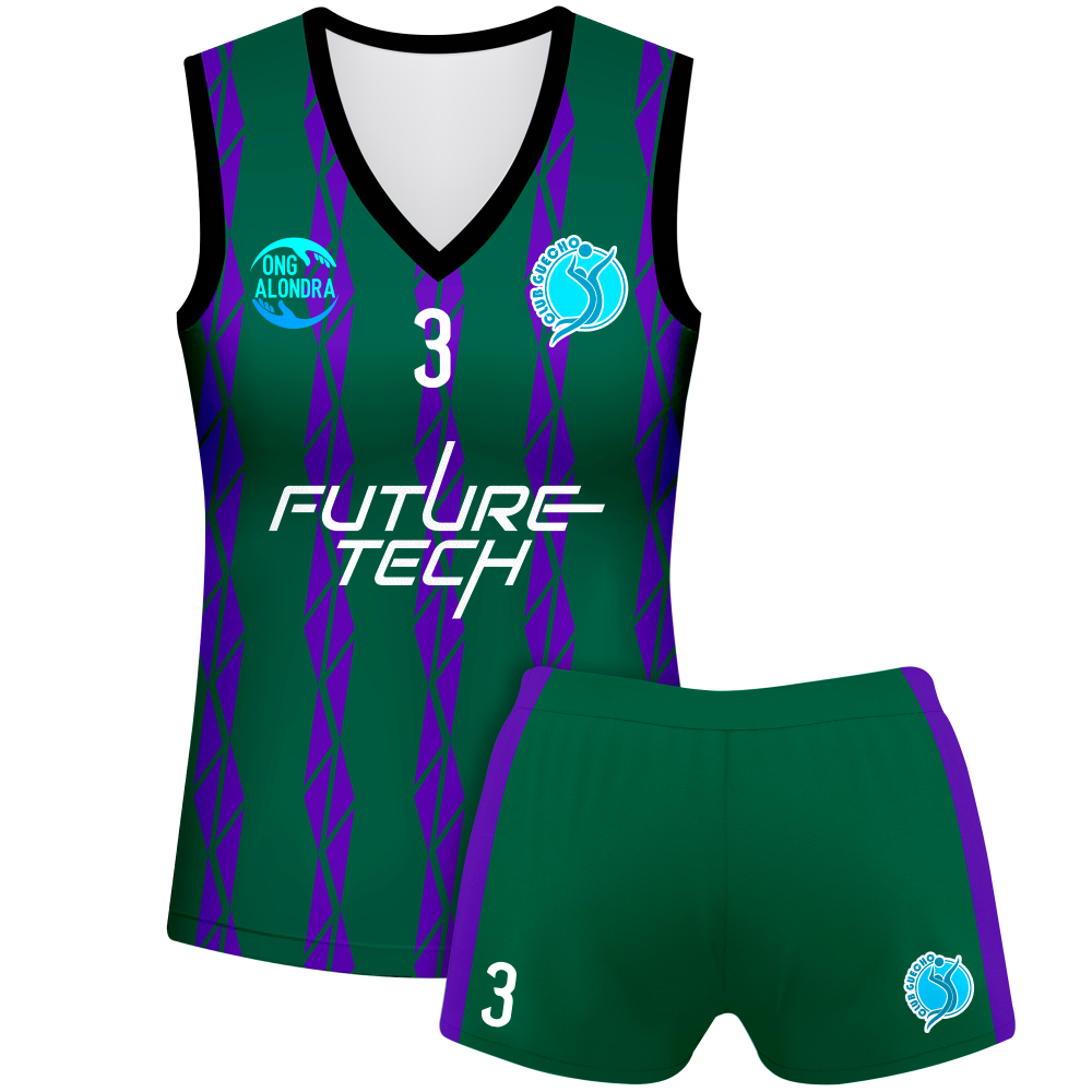 Conjunto voley mujer sin mangas sublimado modelo bandas