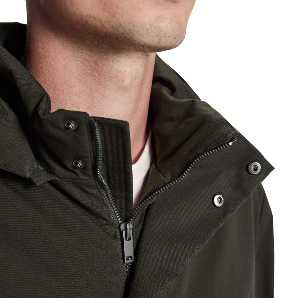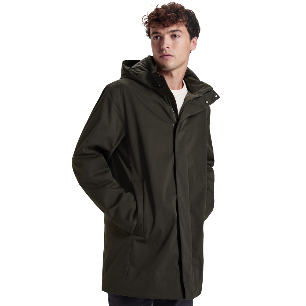 Parka acolchada 3/4 con cuello alto y capucha extraíble mediante cremallera