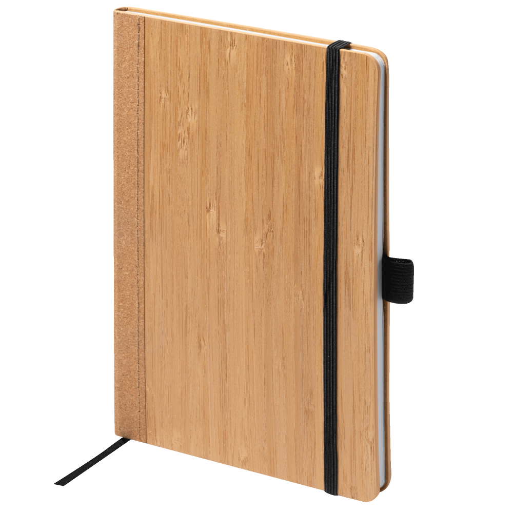Libreta A5 (14,5x21x1,5 cm) de tapa rígida, realizada con bambú y corcho