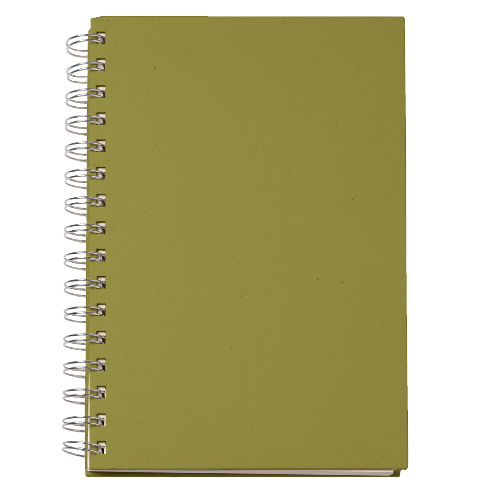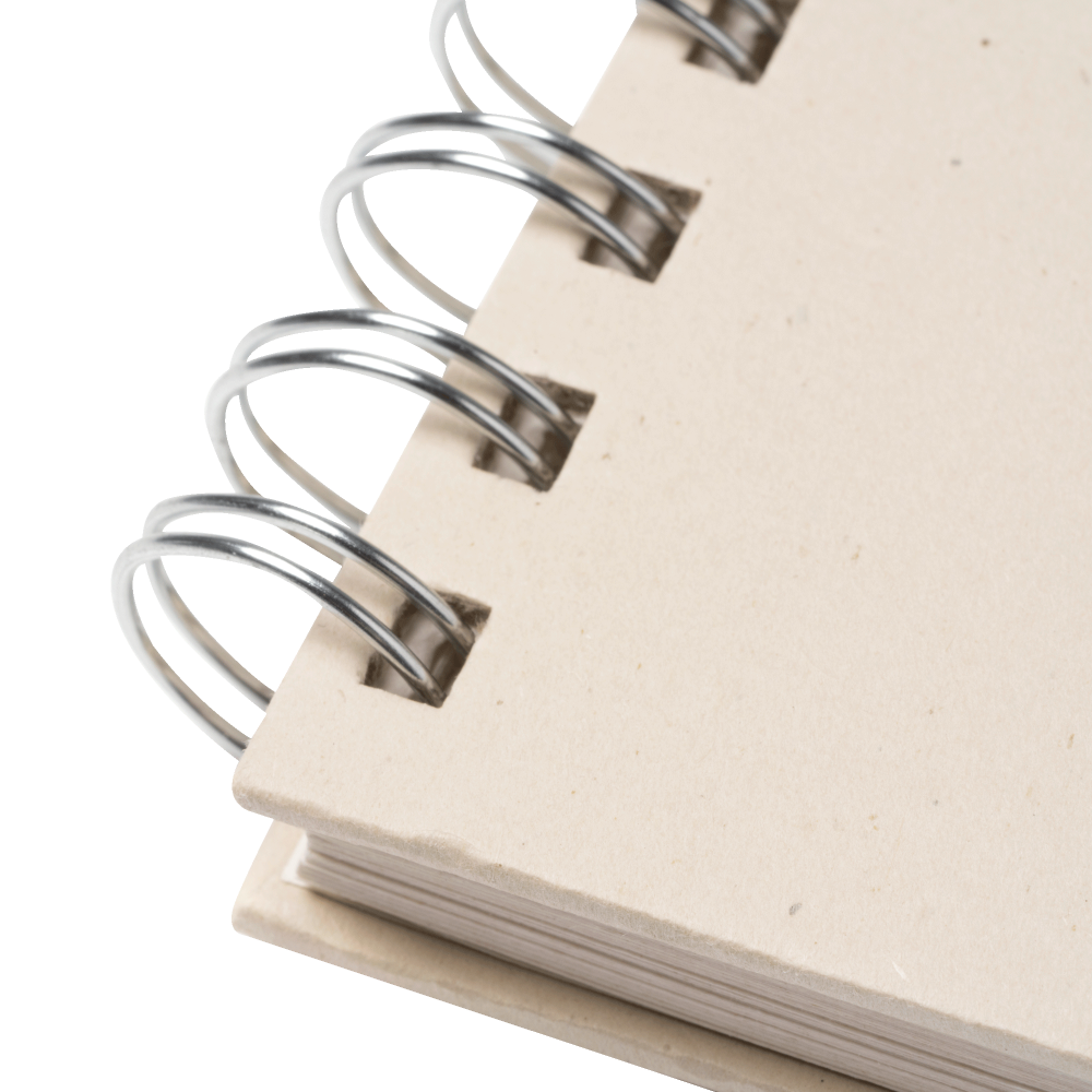 Libreta A5 (14x21x1,3 cm) de tapa rígida, realizada en cartón reciclado de briks de leche