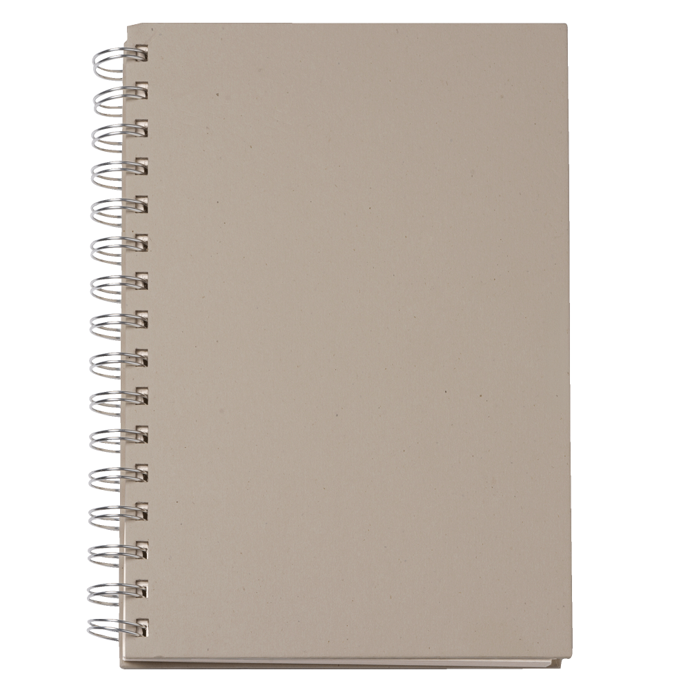 Libreta A5 (14x21x1,3 cm) de tapa rígida, realizada en cartón reciclado de briks de leche