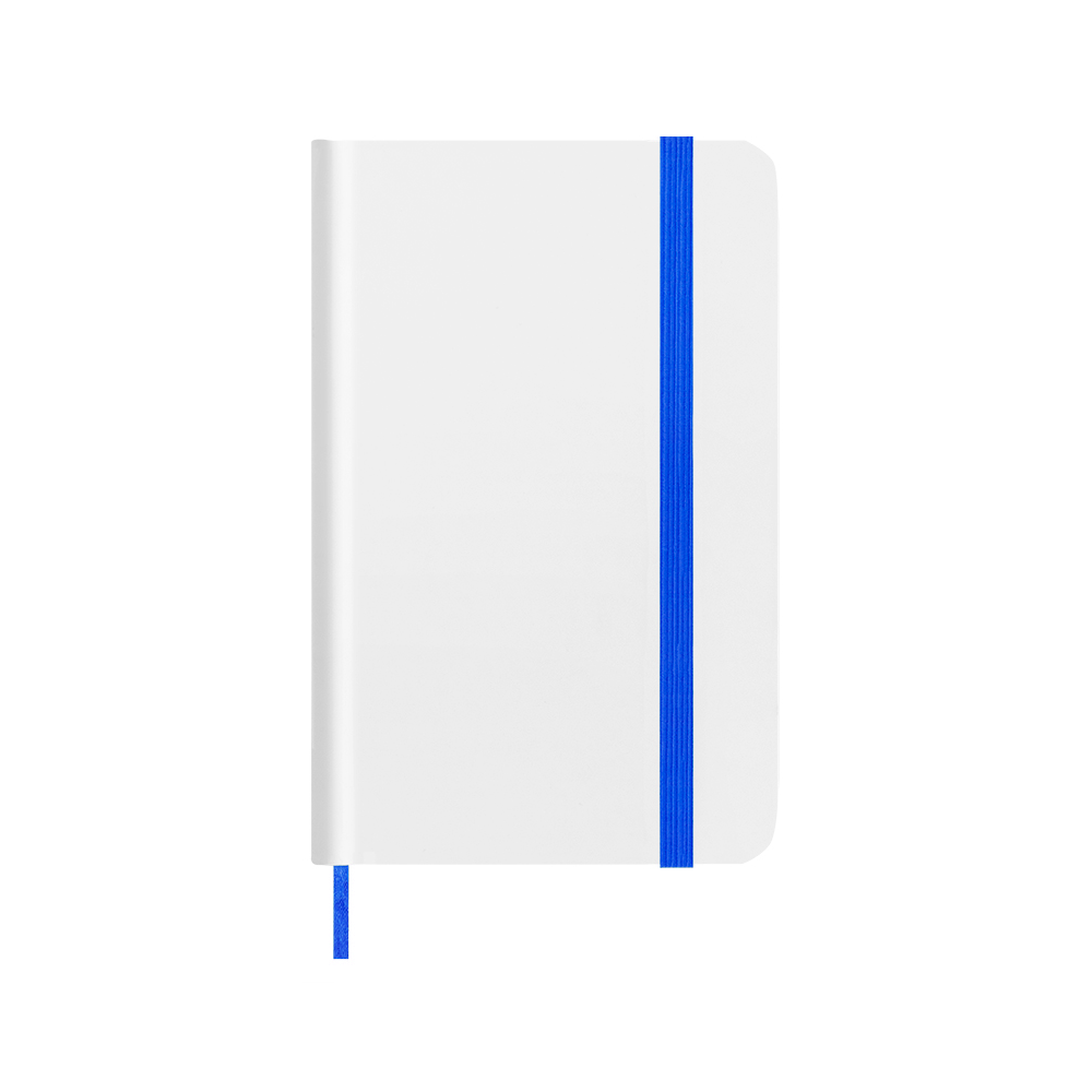Libreta de hoja blanca con tapas de suave tacto en cartón resistente. 80 páginas de hoja blanca con elástico de sujeción y marcapáginas de tela a juego.