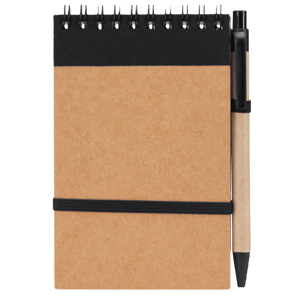 Libreta con espiral y tapa rígida de cartón reciclado.