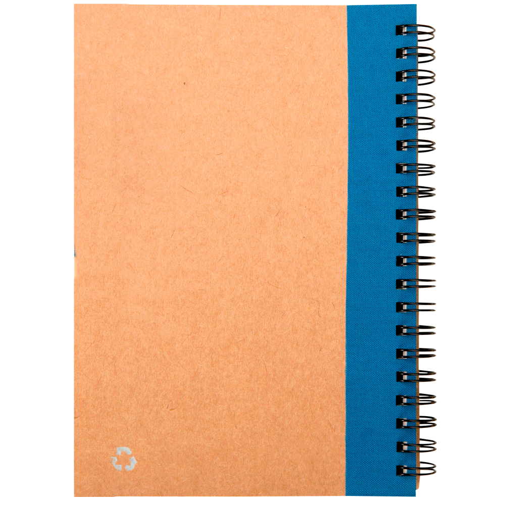 Libreta de 70 hojas de papel reciclado con bolígrafo de tinta azul hecho de cartón reciclado y y plástico biodegradable