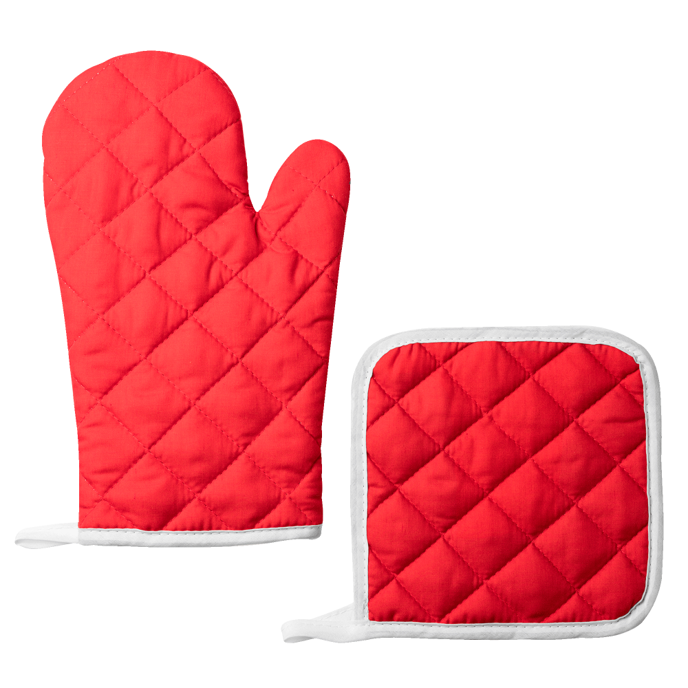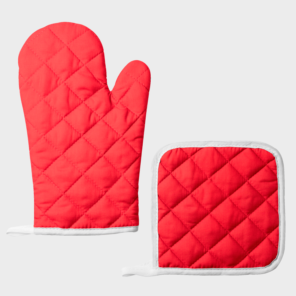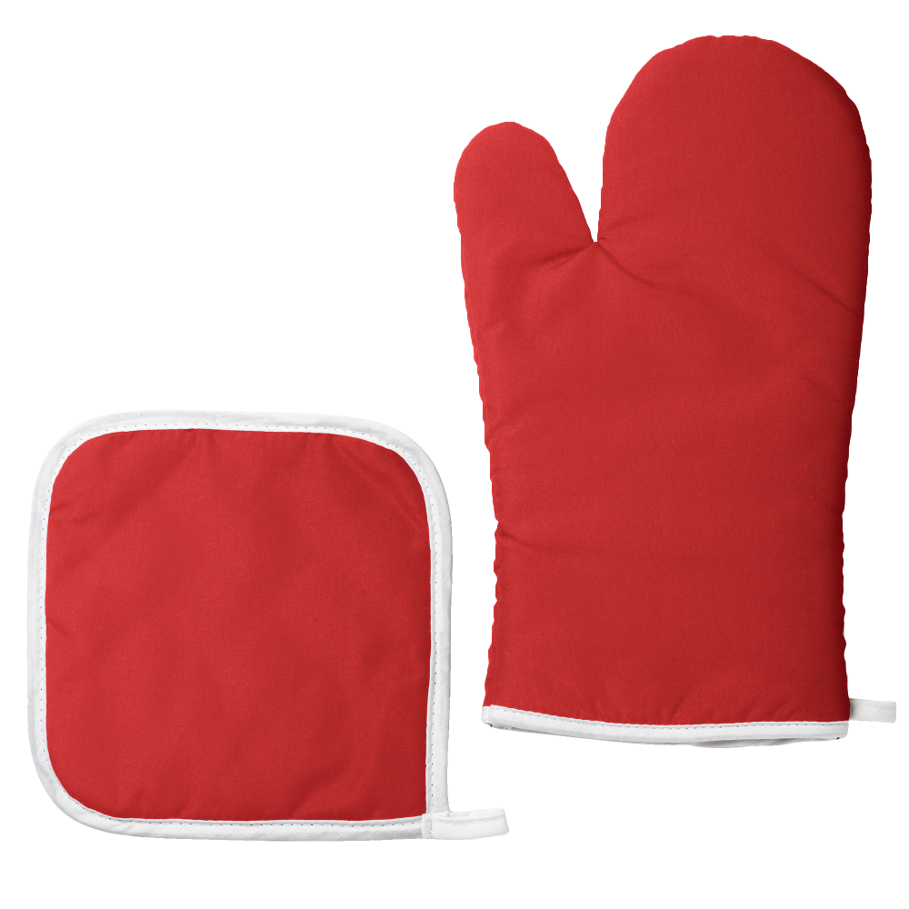 Set de cocina compuesto por agarrador y manopla en suave algodón/poliéster.