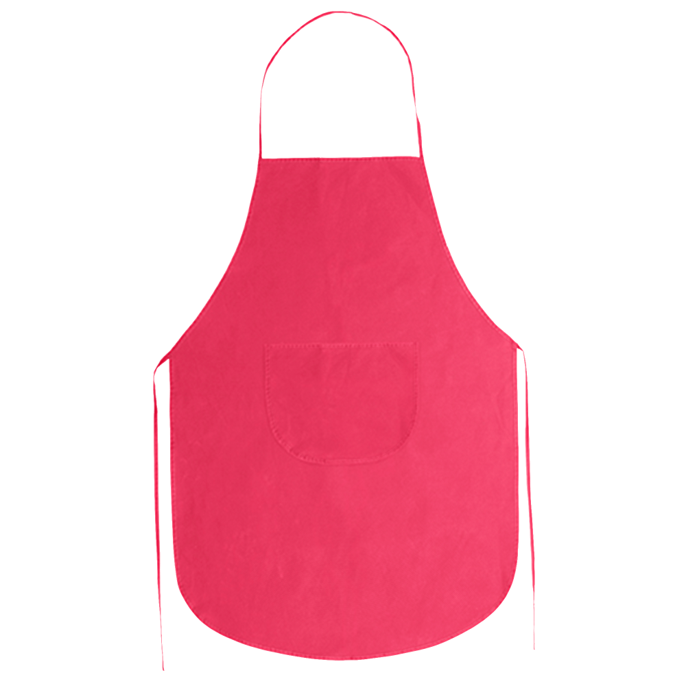 • Delantal de non-woven a color con bolsillo central. Talla única ajustable. Bolsillo 22x17cm.