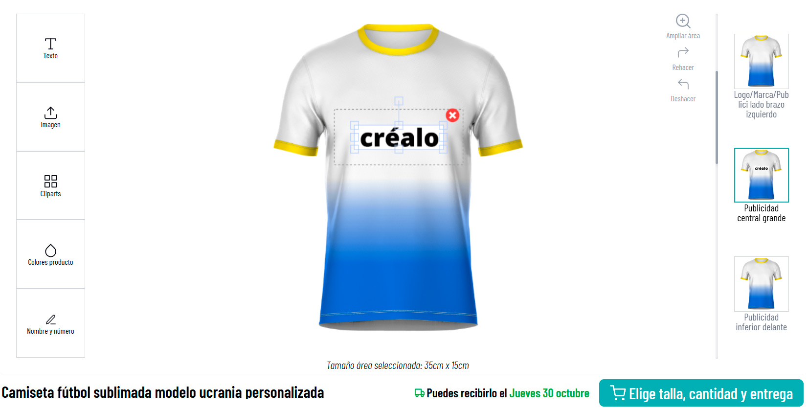Cuando ya lo tengas todo colocado en su sitio y como a ti te gusta, pincha en calcular precio para elegir talla, nombre y número