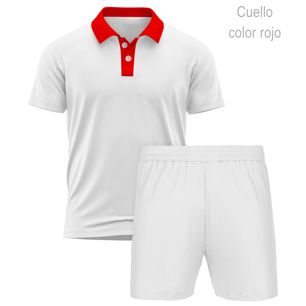 En este conjunto puedes personalizar la totalidad de la parte delantera y trasera de ambas prendas y las mangas del polo. También podrás escoger el color del cuello.