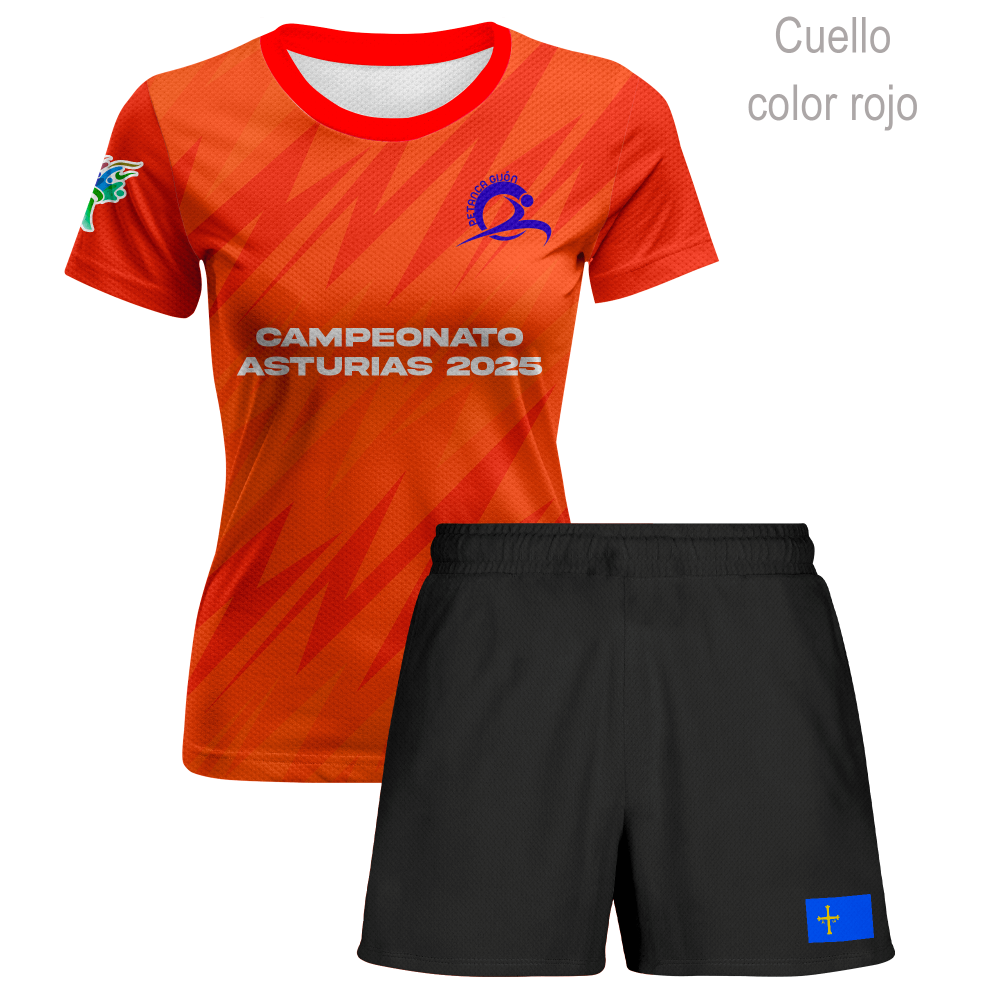 Conjunto petanca camiseta manga corta y pantalón corto de mujer 100% fullprint personalizado