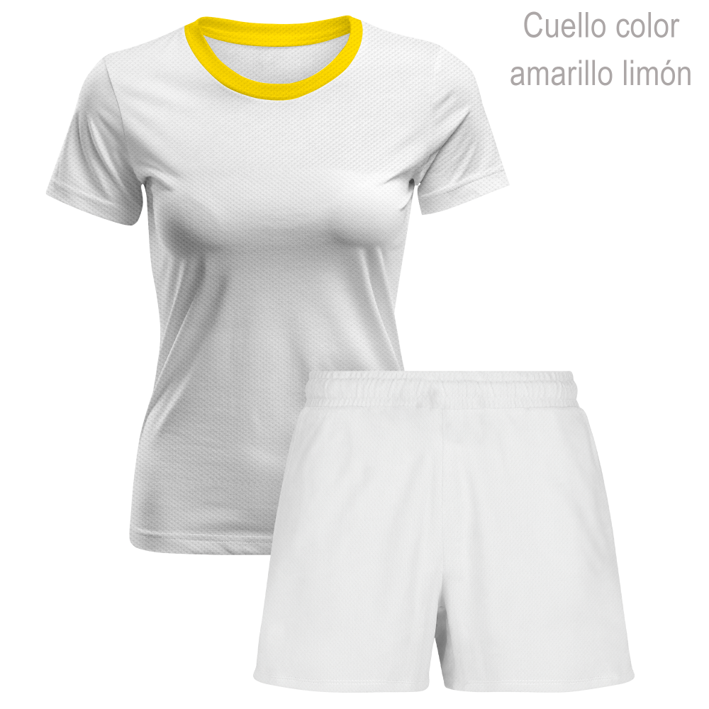 En este conjunto puedes personalizar la totalidad de la parte delantera y trasera de ambas prendas y las mangas de la camiseta. También podrás escoger el color del cuello.