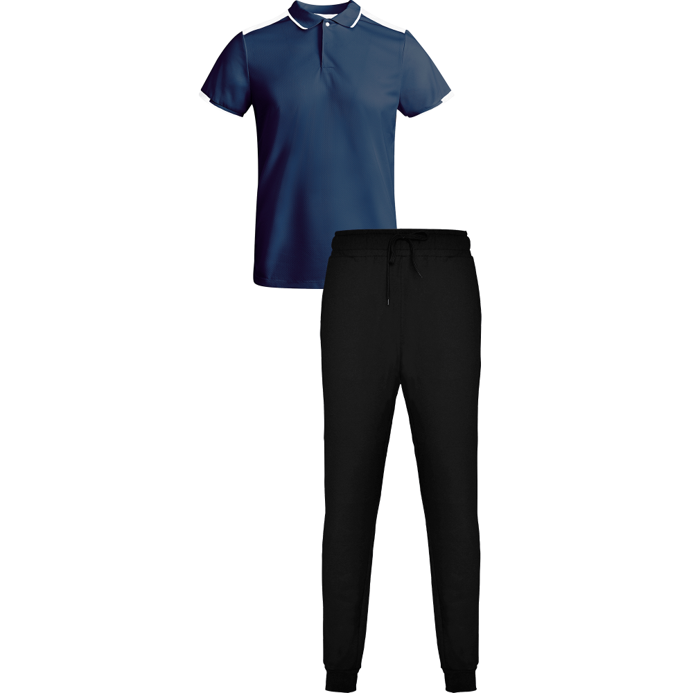 Conjunto infantil petanca polo técnico bicolor y pantalón largo personalizado