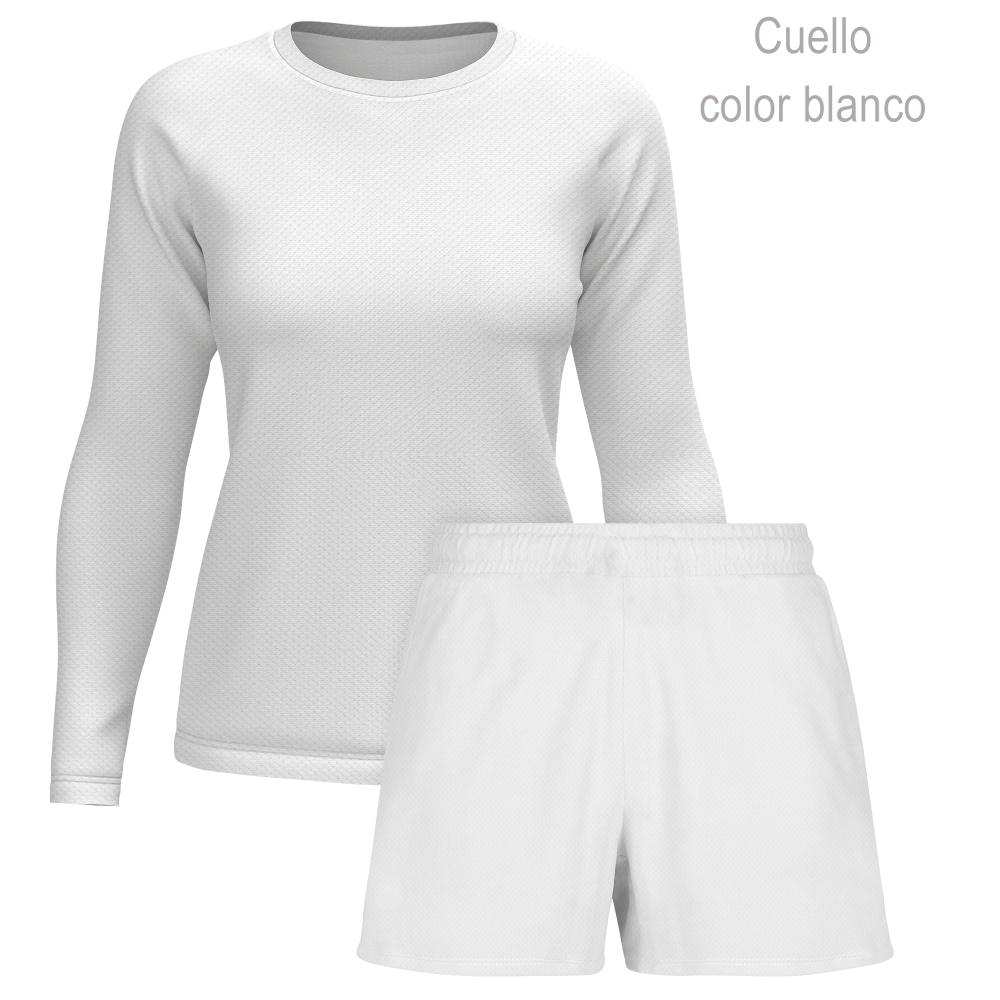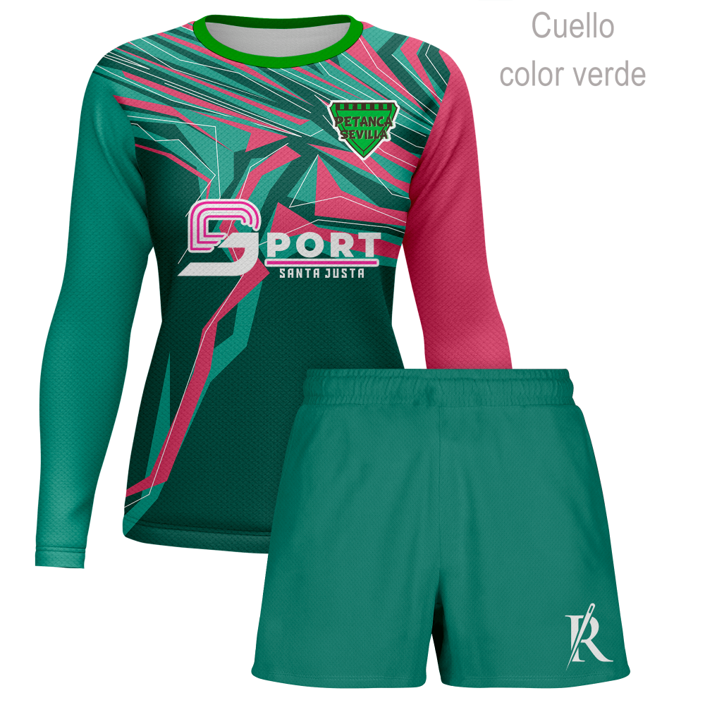 Conjunto petanca camiseta manga larga y pantalón corto de mujer 100% fullprint personalizado
