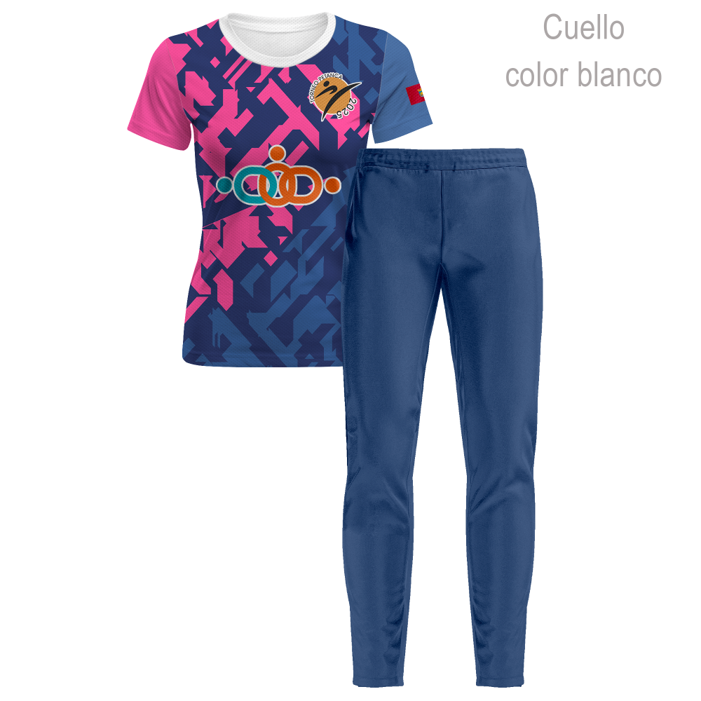 Conjunto petanca camiseta manga corta y pantalón largo de mujer 100% fullprint personalizado