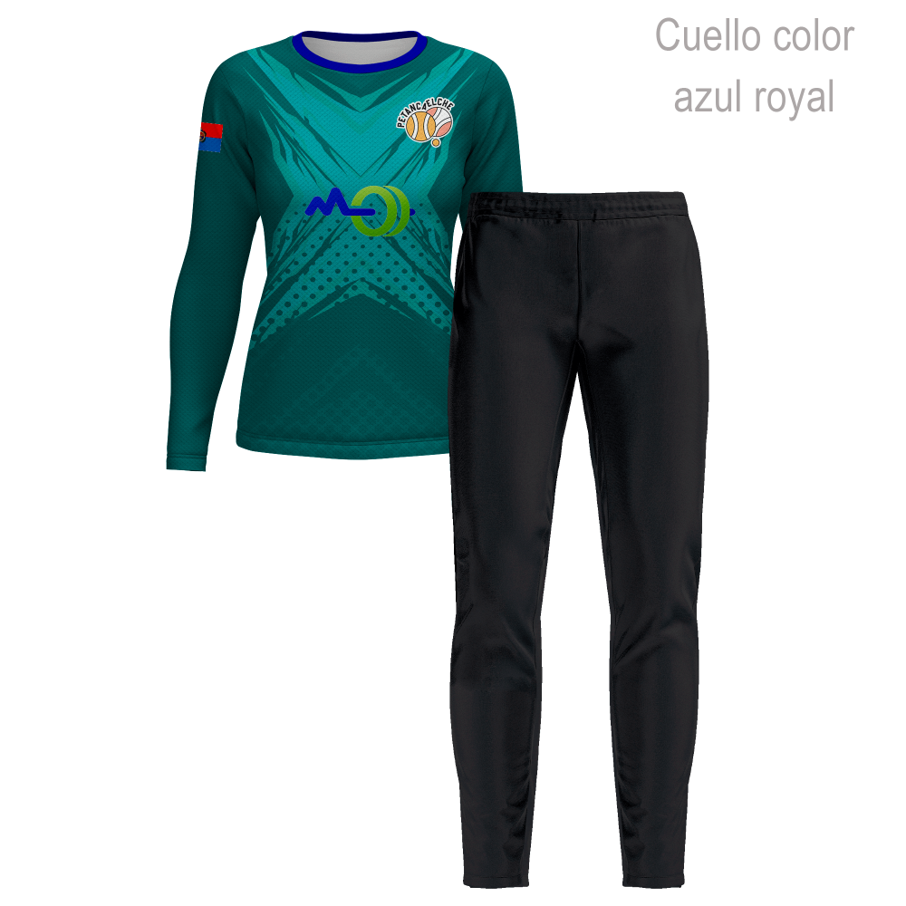 Conjunto petanca camiseta manga larga y pantalón largo de mujer 100% fullprint personalizado